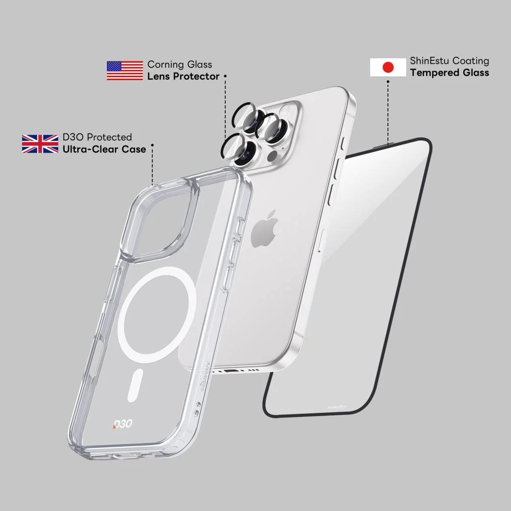 ارمور برو - بكج 3 في 1 لاجهزة الايفون 16 برو ماكس ماج سيف - شفاف