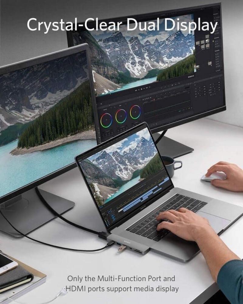 - شاشة متعددة الشاشات: يدعم منفذ HDMI دقة 4K بتردد 30 هرتز، بينما يدعم منفذ Thunderbolt 3 دقة 5K بتردد 60 هرتز. يمكنك الاتصال بكليهما في آنٍ واحد للاستمتاع ببث أو انعكاس فائق الوضوح على شاشتين.