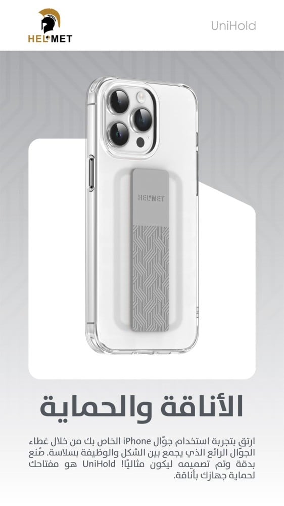 - يحتوي غطاء UniHold على مسكة مطاطية خلفية توفر قبضة أكثر إحكاماً وراحة لجوالك.