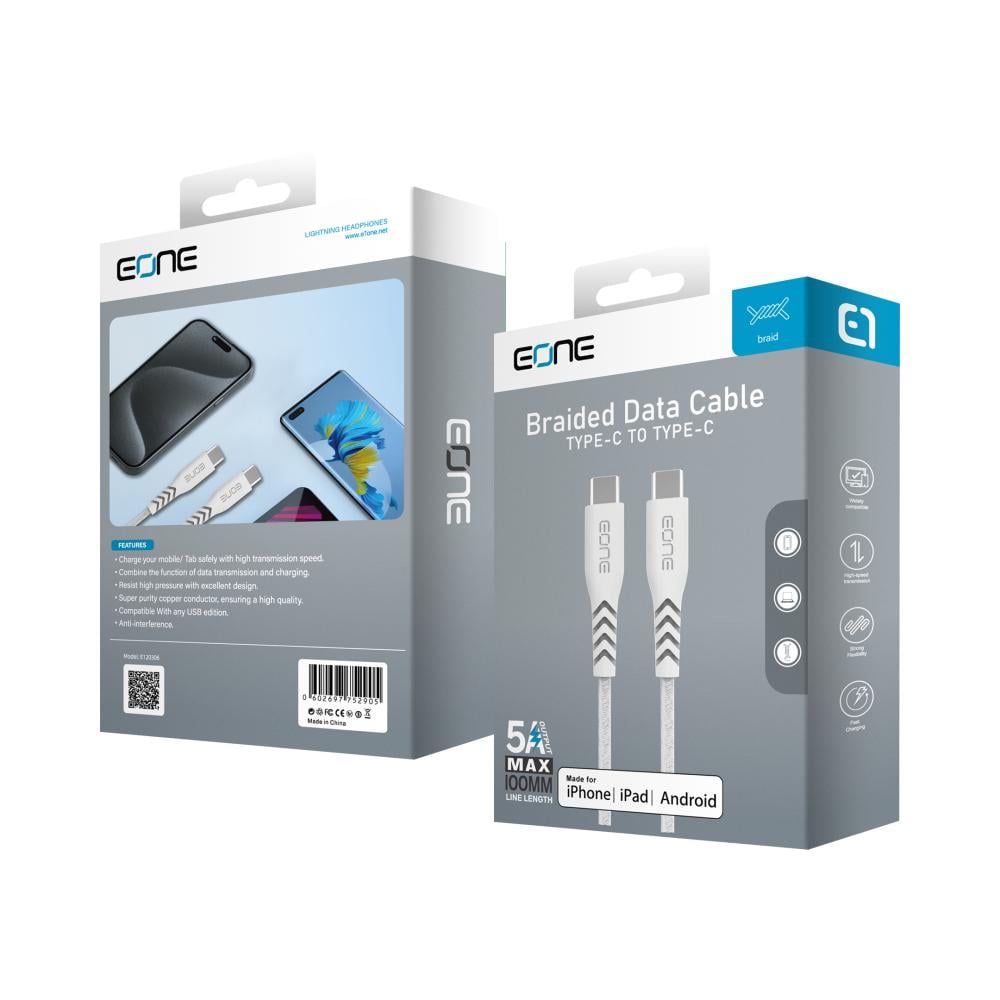 كيبل للشحن ونقل البيانات. ّ يدعم الشحن السريع بقوة تصل إلى 100 واط. ّ مقوى بطبقة قماش متينة من نسيج النايلون.
