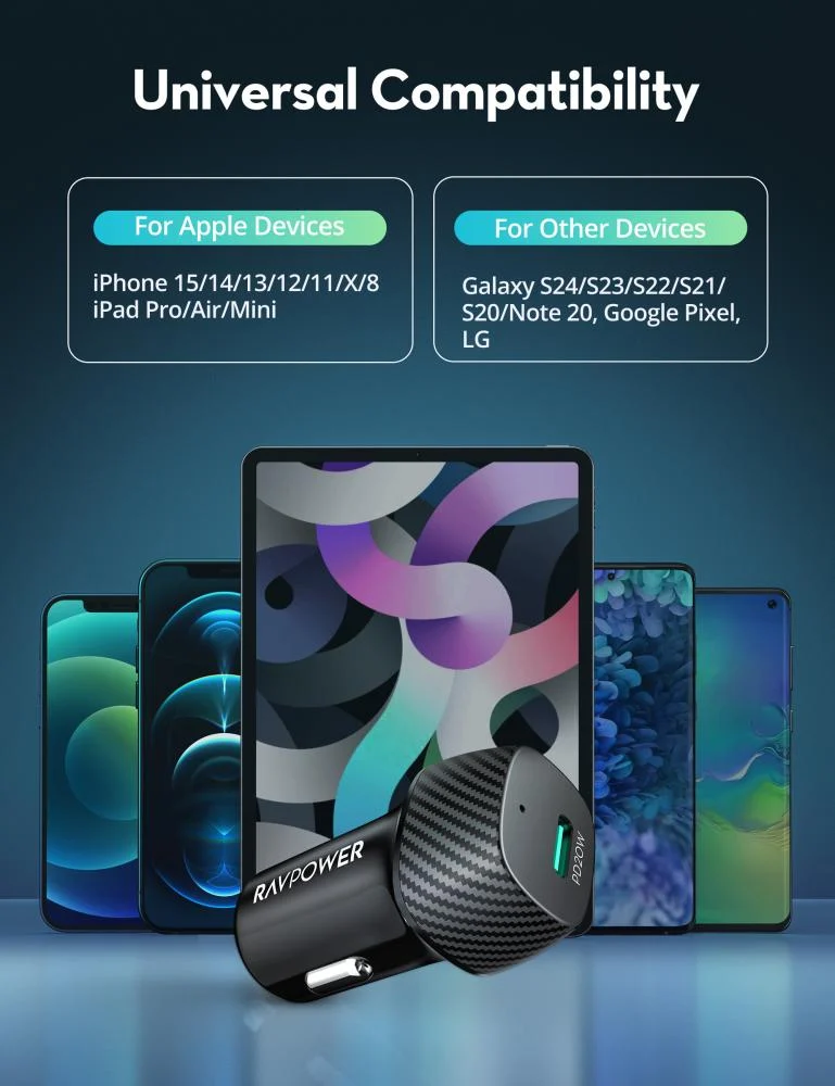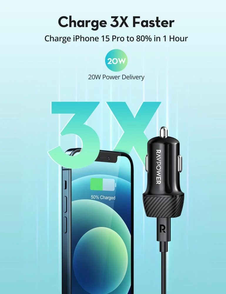 بكج راف باور شاحن جداري بقوة 20 واط بمنفذ تايب سي + شاحن سيارة بقوة 20 واط بمنفذ تايب سي + سلك تايب سي الى تايب سي 1 متر - اسود