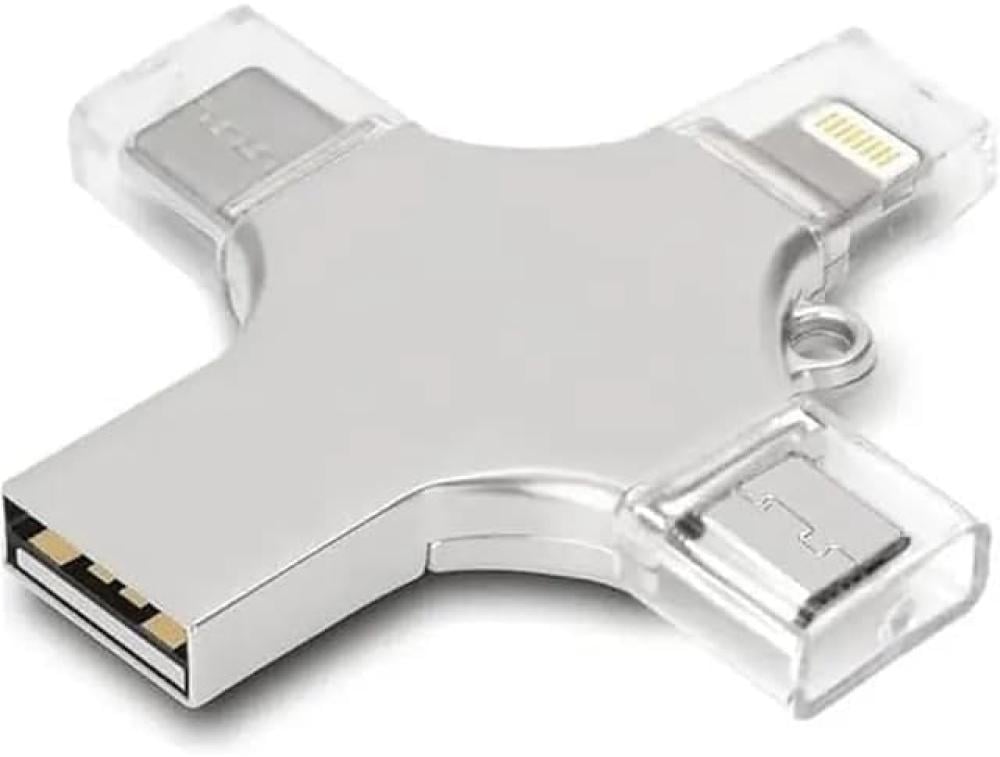 معلومات محرك أقراص فلاش USB عالمي 4 في 1 من Green Lion بسعة 512 جيجابايت، USB-A، USB-C، موصلات Micro USB وLightning Head، صغير الحجم وقابل للحمل، نقل بيانات عالي السرعة - فضي