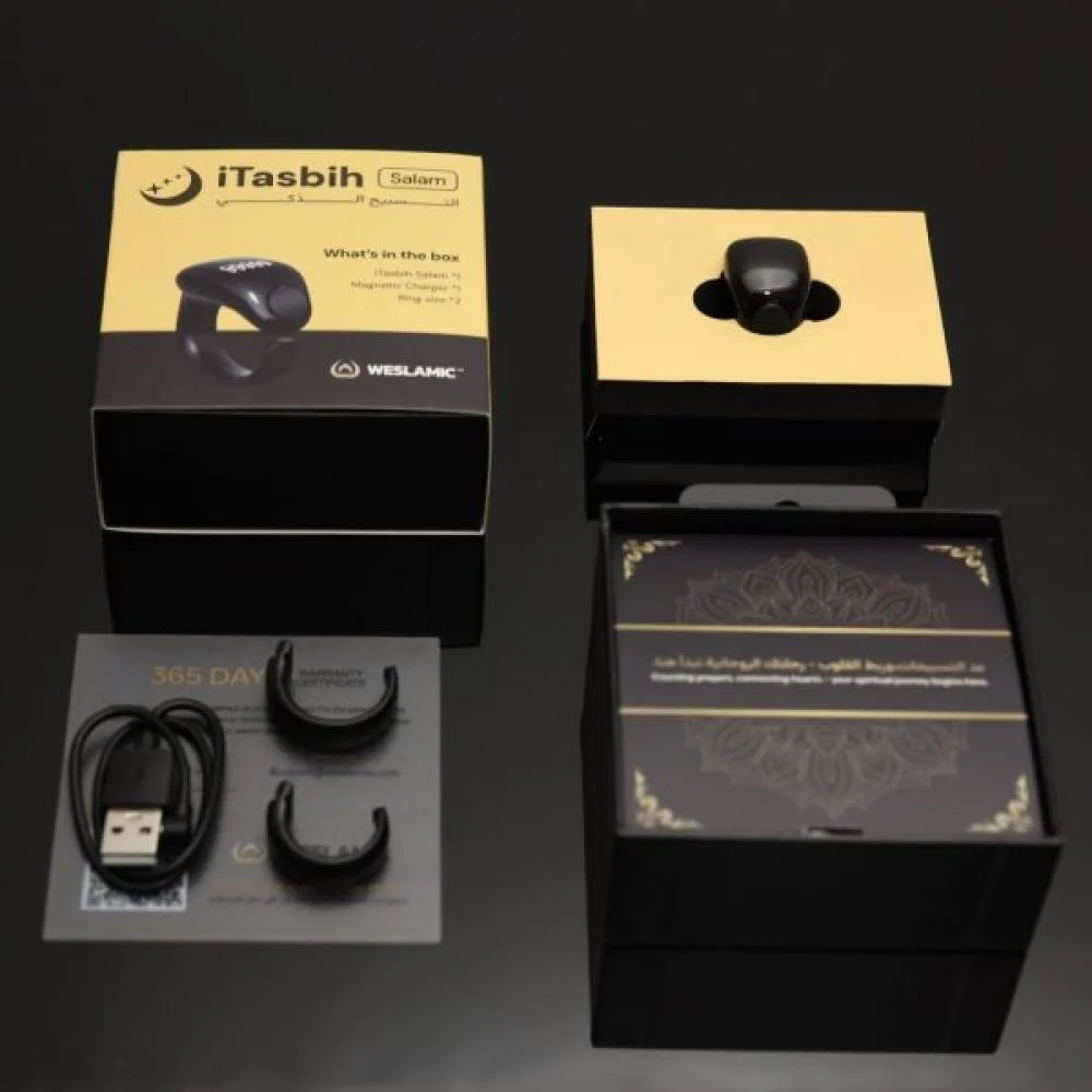 خاتم التسبيح الذكي من Weslamic هو خيار رائع للمسلمين لأنه مصنوع من راتنج ABS ويزن 7 جرام فقط، مما يجعله خفيف الوزن ومريحًا. هذا الخاتم ليس أنيقًا فحسب، بل إنه يدمج أيضًا العديد من الميزات الذكية لتسهيل صلواتك اليومية وحساب المسبحة.