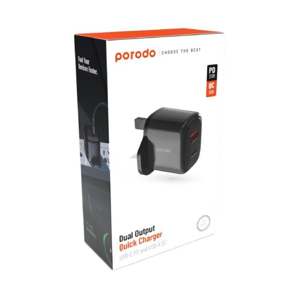 للحفاظ على جوالك بطاقته وشحنه كاملا ابتكرت بورودو راس شاحن ايفون بمخرجين Porodo QC USB A+C Charger UK with C-Lightning Cable فيش شاحن ايفون بمخرجين تتمكن من شحن العديد من, مع عدة دارات حماية وسلك شحن متوافق مع معظم الأجهزة وغيرها الكثير.