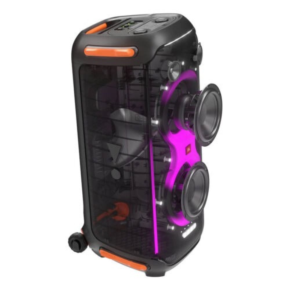 - يمكن تخصيص عرض الأضواء الديناميكي والملون بسهولة عبر أقراص اللوحة العلوية أو تطبيق PartyBox (يلزم التنزيل)