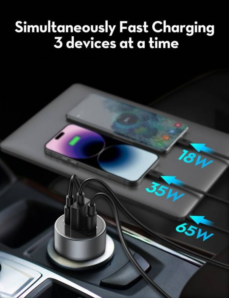 أجهزة متعددة محول شاحن سيارة RAVPOWER 3 منفذ يو اس بي ومنفذين تايب سي يشحن 3 أجهزة بأقصى سرعة في وقت واحد ، ويلبي بسهولة الأجهزة المتعددة الخاصة بك.