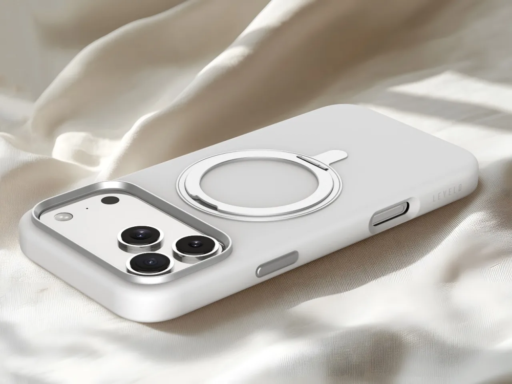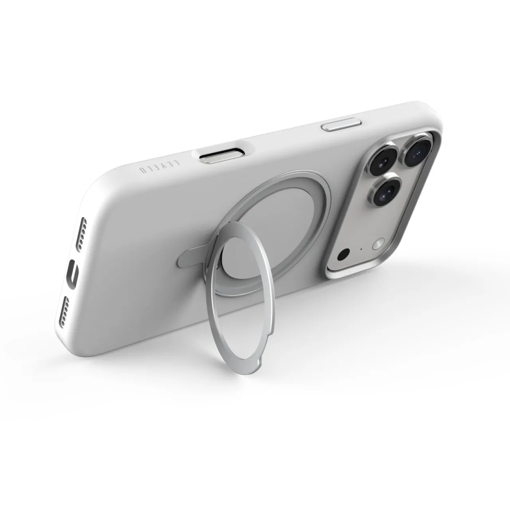 كفر جوال ايفون 17 برو ماكس ماج سيف سيليكون مع حامل جوال فضي ليفيلو