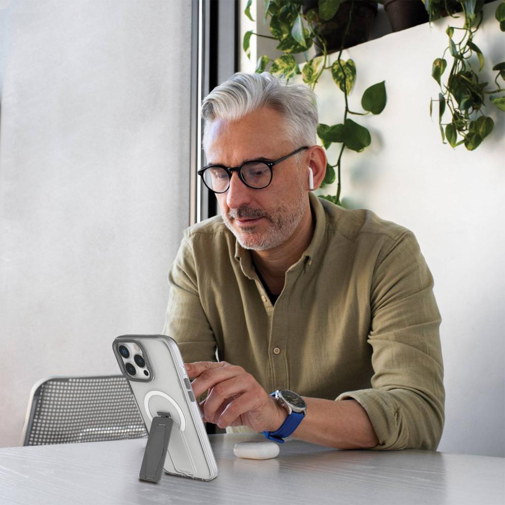 كفر Levelo Morphix MagSafe Grip لهاتف iPhone 16 Pro، زوايا مقاومة للصدمات، حلقة معدنية للكاميرا، حامل متعدد الوظائف من مادة TPU الفاخرة من Bayer، مقبض من السيليكون