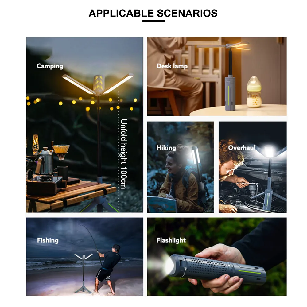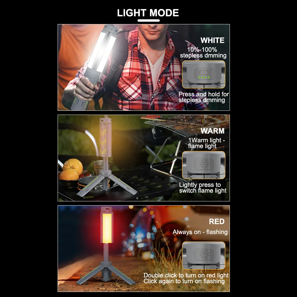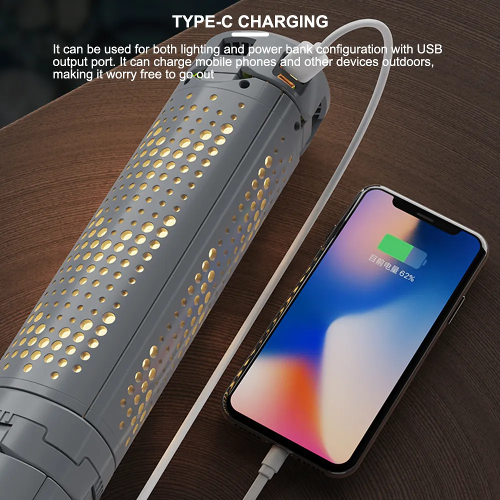 ✨ مصباح واحد لثلاثة أغراض: إضاءة + بطارية متنقلة + إشارة ضوئية