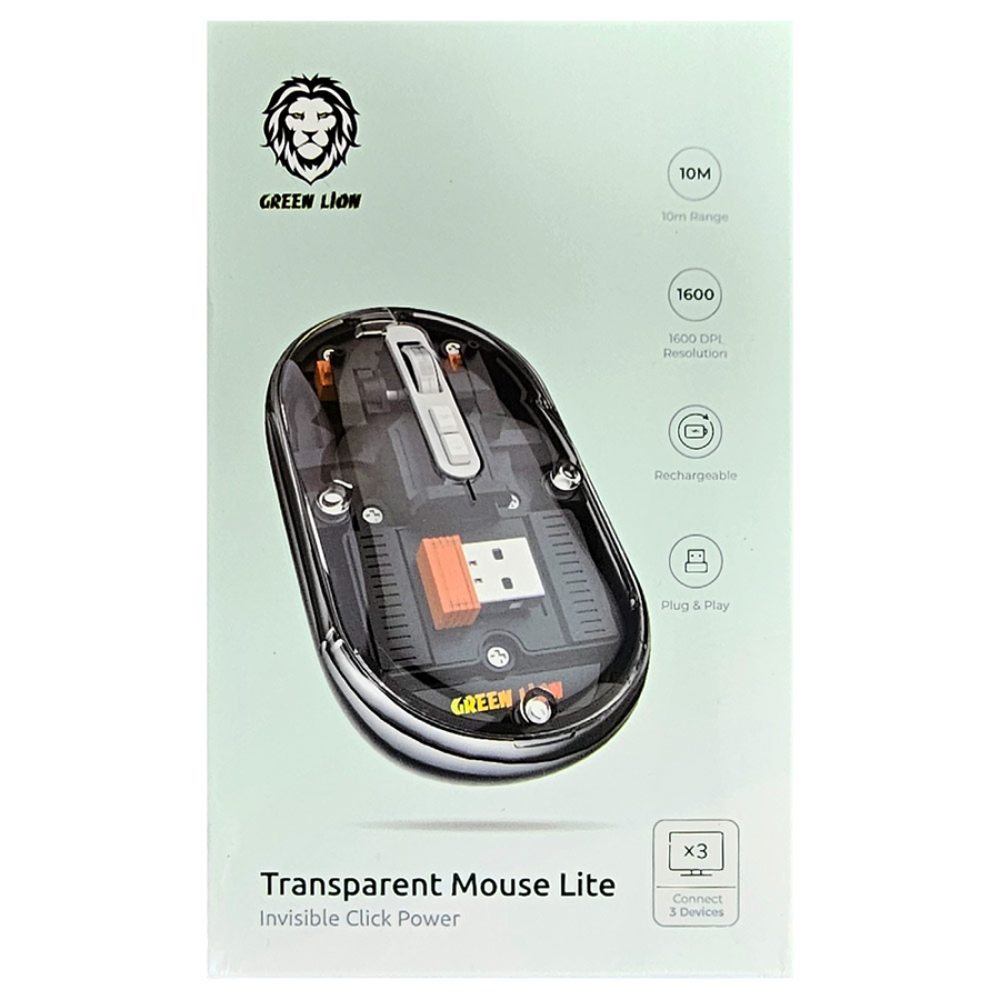 الفأرة الشفافة Green Lion 2 باللون الأسود الشفاف،