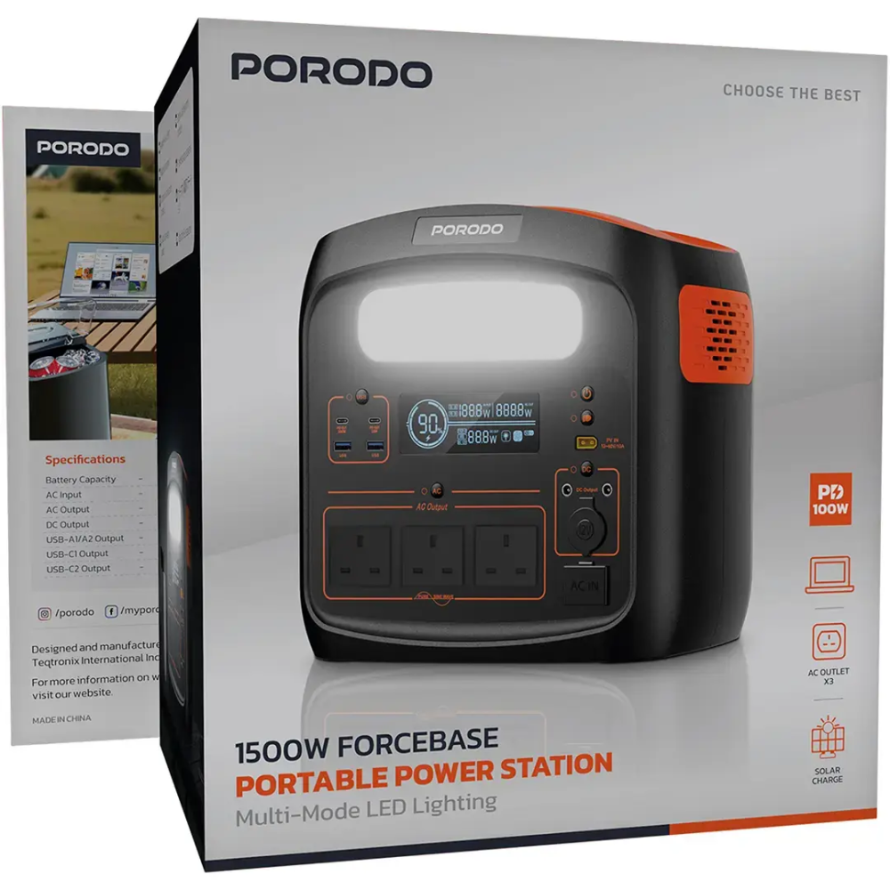 محطة طاقة محمولة بورودو فورسبيس بقوة ١٥٠٠ واط - أسود/برتقالي