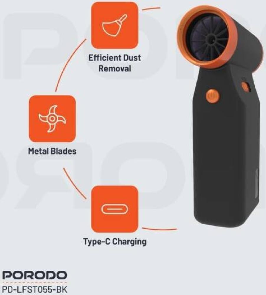 تقدم شركة Porodo جهاز نفخ الهواء Turbo Jet من Porodo Lifestyle، الذي ينظف الغبار بفعالية باستخدام حلول قوية ومدمجة. يعمل الجهاز ببطارية قوية بسعة 1500 مللي أمبير في الساعة عند 11.1 فولت، مما يضمن أداءً مستمرًا لمدة تصل إلى 40 دقيقة مدفوعًا بمحرك عالي السرعة بسرعة 100000 دورة في الدقيقة. وهو مزود بثلاثة مستويات سرعة قابلة للتعديل لكثافة تدفق الهواء المطلوبة في تطبيقات التنظيف المختلفة. يعمل ملحق فوهة الهواء الذي يأتي معه على تركيز قوة الرياح هذه، مما يضمن إزالة الغبار بشكل صحيح ومباشر في تلك المناطق العمياء. تم تصميم جهاز نفخ الهواء Turbo Jet من خلال شفراته المعدنية ليكون طويل الأمد وموثوقًا به بشكل أكبر. يتميز بإمكانية إعادة الشحن عبر منفذ Type-C، حيث يستغرق الشحن الكامل ساعتين فقط عند مدخل 5 فولت/2 أمبير. سواء كان الأمر يتعلق بالإلكترونيات أو لوحات المفاتيح أو الأسطح الحساسة؛ يجسد جهاز نفخ الهواء Turbo Jet من Porodo القوة الهائلة مع الكفاءة والراحة في جهاز واحد مدمج.